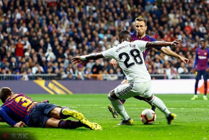 巴萨则在阿图尔的带领下进入了传统的控场节奏,巴西人连续的转身和短传还让人看见了一些哈维的影子。但他毕竟刚刚伤愈,很难立刻就踢满对抗强度很高的国家德比。于是教练巴尔韦德换上了比达尔,带给了维尼修斯和雷吉隆更深的噩梦。