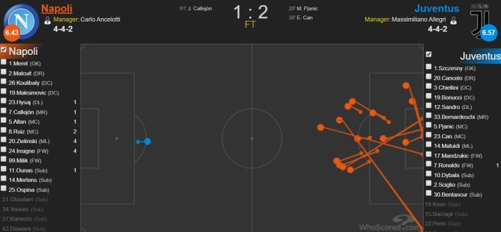 整个下半场,尤文只有1次射门,那不勒斯则有14次。因西涅不断用高质量的传中证明自己为什么在FIFA里同时拥有技巧传中和第一时间传中这两项隐藏技能,只可惜阵中唯一的高中锋米利克已经洗过澡变成了板凳席的观众。
