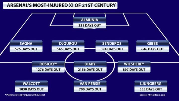 统计显示,在这次伤病后,阿森纳在枪手的9年生涯里共受伤42次,养伤时间近2000天。而更令人遗憾的是,迪亚比的陨落,成为了那一批阿森纳小将生涯的缩影。2008-09赛季,阿森纳的大名单里,迪亚比与朱鲁、贝拉、沃尔科特等人星光闪耀,成为了阿森纳再次称霸英伦的希望,而伤病的厄运却一次一次的落在了他们的头上。