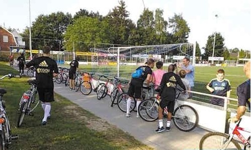 ▲在小镇拉练,阿贾克斯给队员发自行车。