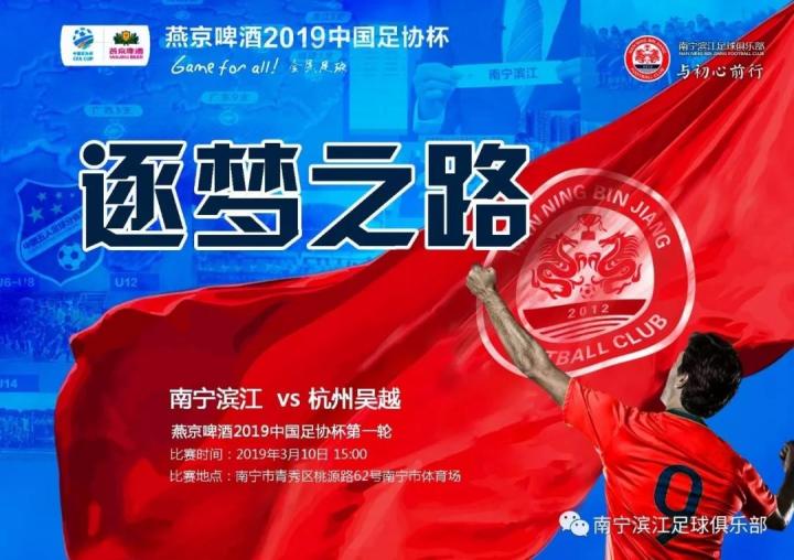 2018年12月21日,足协杯资格赛华南区,南宁滨江凭借伦子华和陈大勇的进球,2-1战胜三亚国兴情豪进入2019年中国足协杯正赛,岁末年初给南宁球迷送上了一份新年厚礼。2019年3月10日下午15:00,足协杯正赛首轮,南宁滨江将坐镇南宁市体育场迎战中乙球队杭州吴越钱唐。之后,南宁滨江即将征战新赛季的中冠联赛和桂超联赛。从桂超的菜鸟到中冠劲旅,滨江足球人凭借着越挫越勇、百折不挠的精神,时隔四年终于将足协杯再次带回邕城南宁!