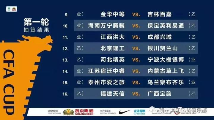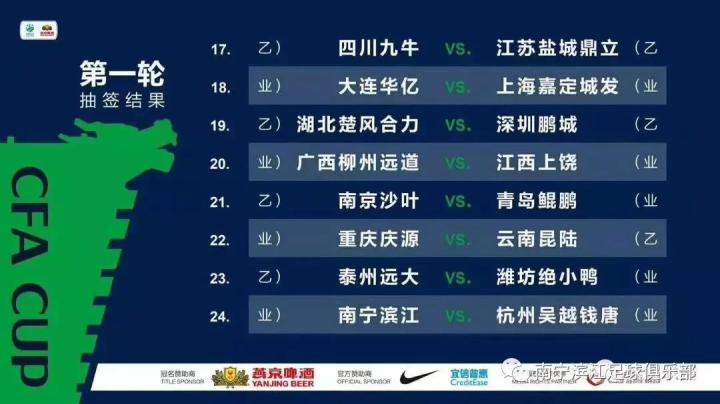 2019足协杯第一轮抽签,南宁滨江主场对阵杭州吴越钱唐