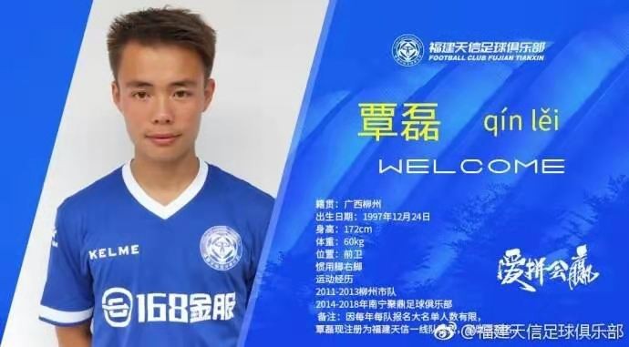 福建天信足球俱乐部前身可以追溯到1997年,可谓中国业余足球圈中的常青树。2005年,中金在线集团正式组建福建天信足球俱乐部。2017年1月16日正式成立职业俱乐部和职业队,并获得2017年中国足球协会业余联赛总决赛第7名,递补晋级到中国足球协会乙级联赛 。在去年的中乙联赛南区比赛中,福建天信的取得了常规赛第三名的成绩,打入季后赛,创造了中乙升班马的最好成绩。福建天信阵中有一名广西柳州籍球员覃磊,有望与家乡球队进行比拼。