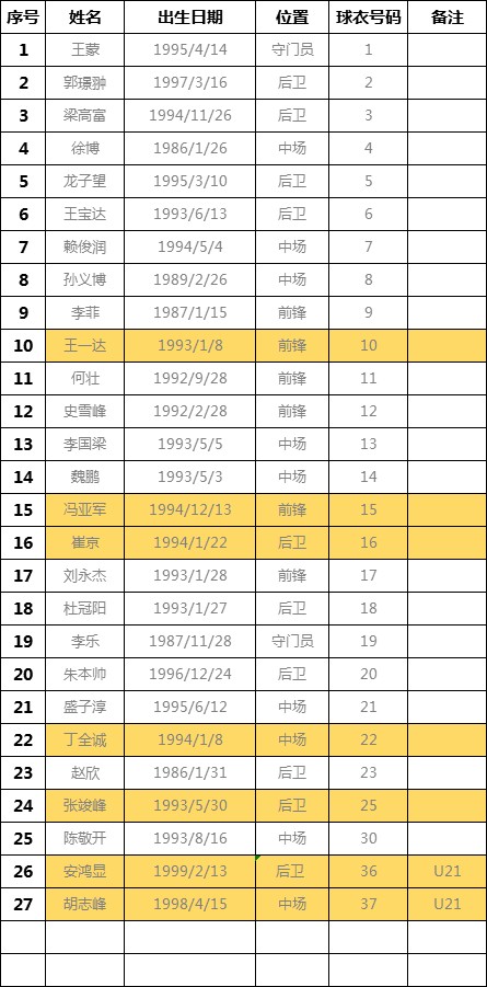 4年前龙桂达队南宁主场征战足协杯的首发阵容,这其中丁全诚、詹宝、广权锐、陈意良、王翔宇都很有可能再次征战足协杯