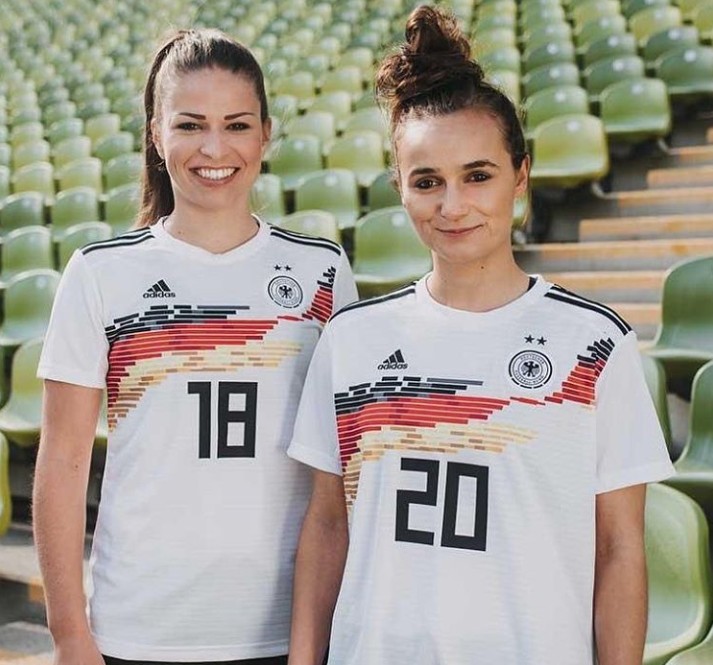 阿迪达斯发布了属于德国女足的主客场球衣,与去年的男足球衣相同,这款主场球衣依旧沿用了1990年的设计理念,更加令人瞩目。并额外增加了更具现代感的黑、红、黄三色的数码花纹,队徽上的两颗五角星也代表着德国女足曾经两次夺得女足世界杯。