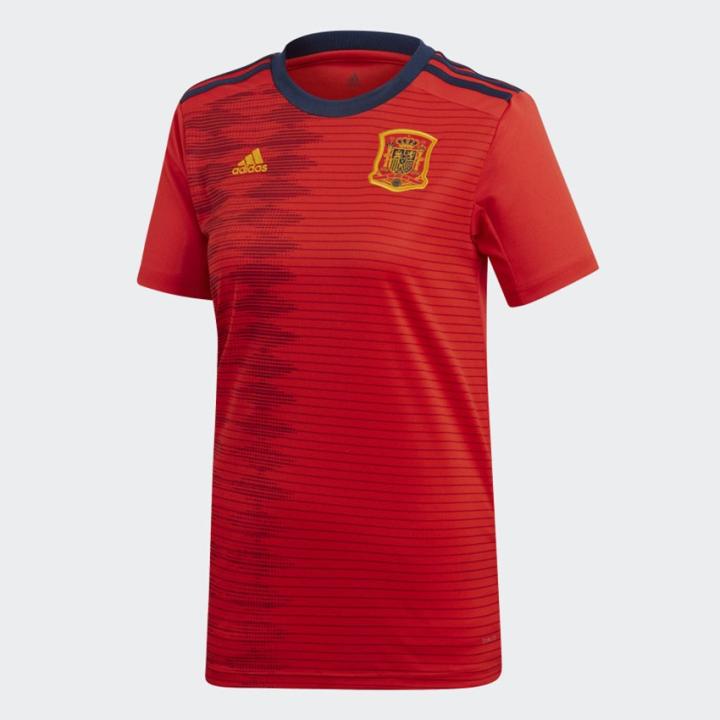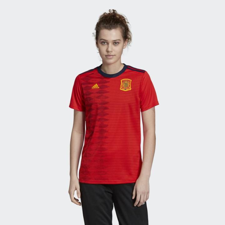 西班牙女足世界杯球衣在设计上更加传统,配色上依旧沿用了斗牛士军团的传统红色,球衣上的菱格花纹重新用黑色波点图案进行组合,在过于传统的设计上增加了更具现代化的元素。