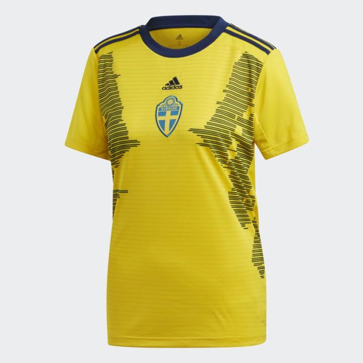 作为举办过第二届女足世界杯的国家,瑞典这款主场球衣的设计灵感就来源于1995年作为东道主所身穿的主场球衣。与德国和西班牙的球衣所不同的是,瑞典的新款女足世界杯球衣将队徽和阿迪达斯标识放在了球衣的中间位置,使球衣整体具有一种独特的对称美感。底色延续了传统的黄色与海军蓝色相结合,两侧采用了深蓝色的水平线横纹图案,为球衣增加了更具灵性的美感。