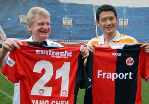 1998年8月14日,杨晨迎来德甲处子秀,在法兰克福客场挑战杜伊斯堡的比赛中首发出场,中国球员正式亮相五大联赛。1998-1999赛季德甲第3轮法兰克福1-1战平门兴,杨晨在第69分钟禁区外发炮,取得了中国球员在五大联赛的第一粒进球。整个赛季,杨晨以主力前锋身份出场23次攻入8粒进球,荣膺队内最佳射手的同时在最后一轮小角度爆杆进球帮助球队成功保级。