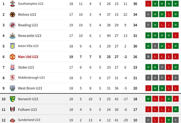本场比赛结束后曼联U23排名联赛第6,2019年他们还从未在英超B联赛中赢球。
