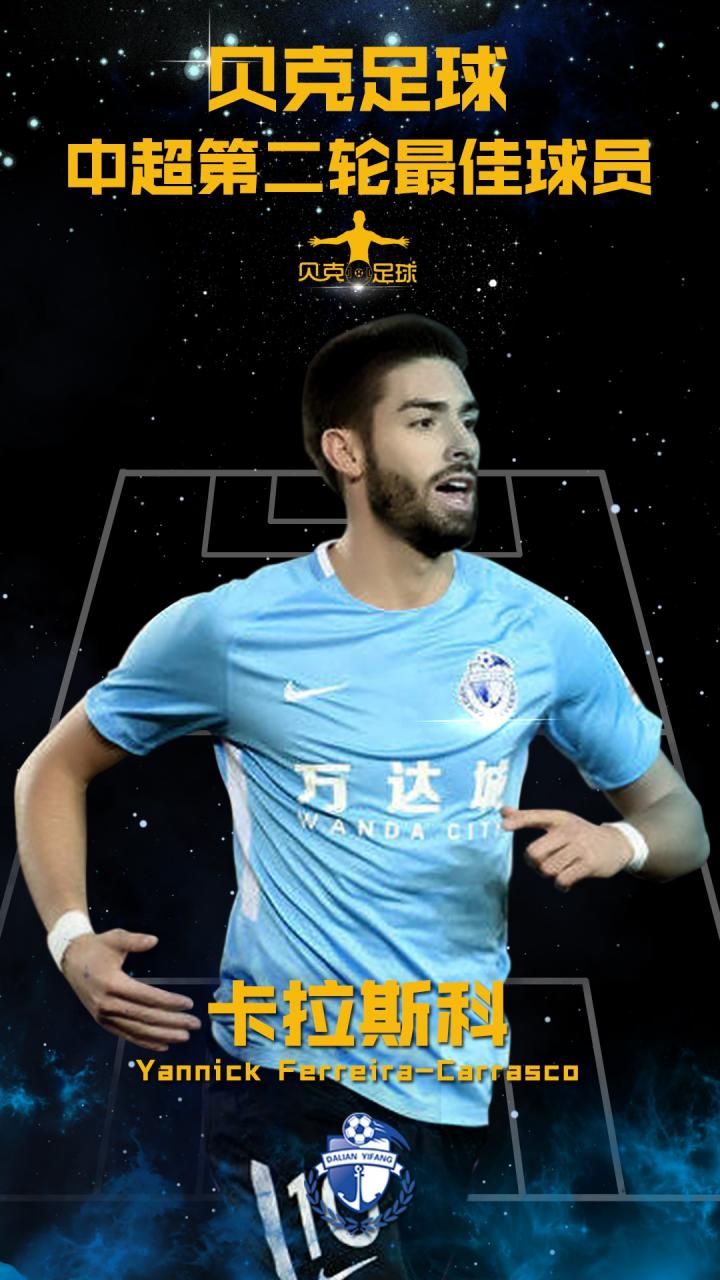 贝克足球第二轮最佳球员:卡拉斯科(大连一方)