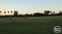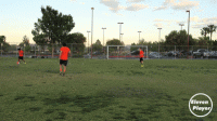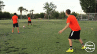 防守者把球传给进攻者,现在就进入了1防2的状态。进攻者试图过掉防守者并把球打入球门,防守者试图把球破坏出去或者把球打入对面的球门。