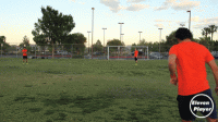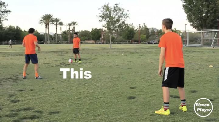 我们假设对方在靠近我方球门的地方形成2打1,进攻球员是右脚选手同时球也在他的身体右侧;这时他就有用他的右脚完成射门的机会。