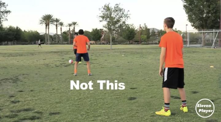 这意味着当第二个进攻球员接球后你仍然处于他们和球门之间同时还能切换保持对他们两人的防守。