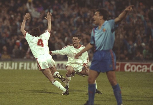 1991年3月21日,1990-91赛季欧洲优胜者杯决赛,当时只能被视作黑马的曼联2:1战胜巴萨,这也是英格兰球队因为1985年海瑟尔惨案被欧足联禁赛5年(利物浦被禁赛6年)后首次夺冠。