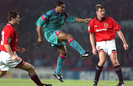 梅开二度的曼联球员马克·休斯曾在巴萨经历过一个失败的赛季。