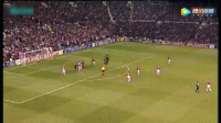 开场仅13分钟,皇马几位巨星简单的传球撕开了曼联的防线,菲戈横传齐达内,齐达内传给古蒂,古蒂送出直塞,罗纳尔多接球后未经调整面对费迪南德一脚禁区外的远射直接洞穿巴特兹把手的大门。