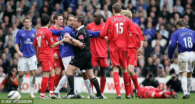 而默西赛德郡德比正因为缺少这样暴力冲突的元素,所以被人们贴上了“友谊”的标签。不过每当利物浦和埃弗顿交锋的时候,球场上可没有什么“友谊和谐”可言。不论是在安菲尔德还是在古迪逊公园,每当两支球队碰面的时候赛前一定会营造出一幅剑拔弩张的氛围。比赛中一定不会缺少凶狠的铲断和激烈的身体对抗,这种强度也是一般比赛所不具有的。英超历史上默西赛德郡德比上出现的红牌数量超过了其他任何德比,从恶劣的双脚飞铲到群殴,似乎默西赛德郡德比90分钟的比赛从不安宁。