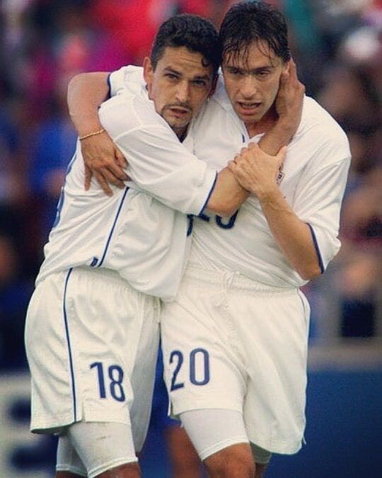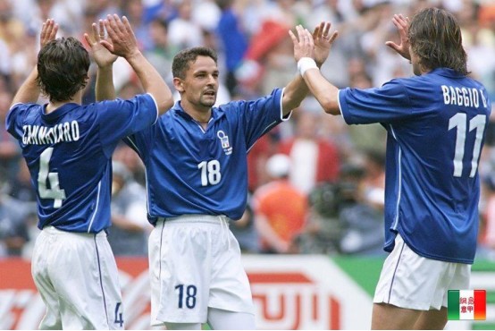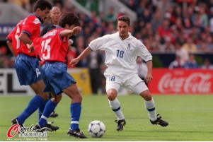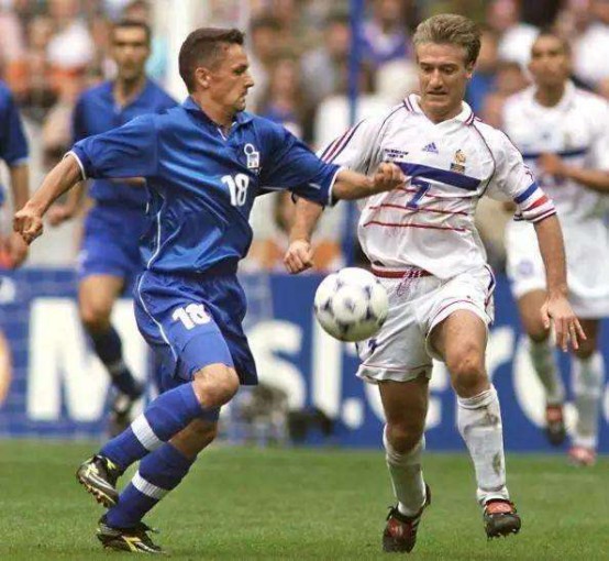 那巴乔和皮耶罗就不能共存吗?在我当时的眼里,巴乔本身就是一个9号半的存在,并不是真正意义上的前锋,而且从米兰转会到博洛尼亚之后,巴乔的位置其实相对比较靠后,游弋在本方前锋之后,这样既能掩盖巴乔因为年纪和伤病带来的冲击力,又能完美的将他的经验和技术淋漓尽致的体现出来,只是如果他和皮耶罗共同上场,意大利的中场只能在之前8名选手中选出3名,迪诺巴乔,阿尔贝蒂尼,决不能少,那再上谁呢?迪比亚吉奥,迪利维奥,迪马特奥,似乎上谁,老马心中都觉得这种配置的中场,防守有点力不从心,毕竟前面那三前锋虽然摆上去华丽异常,但都不是干脏活累活的人选,中场的前腰位置完全让对手长驱直入这在意大利的传统战术浸淫下成长起来的老马似乎无法接受,在意大利防守这件事绝不可能掉以轻心。在第二场对喀麦隆前的热身训练中,他还特意演练了三前锋的阵型并且看上去效果相当不错,大家似乎都觉得万众期待的维埃里+皮耶罗+巴乔的新三叉戟将要闪亮登场的时候,老马自己在第二天又郑重的否定了三前锋的打法,让所有人都大跌眼镜。这种选择是一种风格上的妥协,是一种长期思维习惯的惯性,这种惯性让重视防守的老马尔蒂尼在最后的选择上做出了自己的判断,如果换成任何一个比较崇尚进攻打法的教练,都有可能让三前锋成为现实,但老马尔蒂尼最后郑重的否决了这个想法,哪怕他需要重新背负上来之各方面的压力。在意大利迎战喀麦隆的头天晚上,老马尔蒂尼和皮耶罗单独谈了几分钟,现在看来应该是让皮耶罗再恢复等待,下场比赛他会继续巴乔首发,但我相信这个谈话中应该也包含了给皮耶罗的承诺。果然在6.18号的比赛,巴乔首发登场,干净利落的3:0将非洲雄狮斩落马下。锁定胜局之后,老马将皮耶罗换下巴乔让他进行了首次亮相,但这种弥补其实可能对这两个人来说都没有任何意义了,更多的是缓解来之皮耶罗背后的压力。