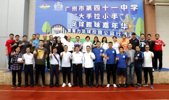 “大手拉小手”足球趣味嘉年华暨富力足球校园公益活动于上周五在广州市第四十一中学举行。作为广州富力足球俱乐部的友好学校,四十一中与俱乐部共同主办本次活动。