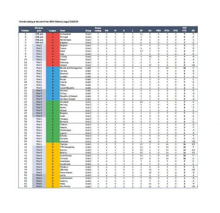 (上图为欧国联排名,将决定进入附加赛的球队资格)