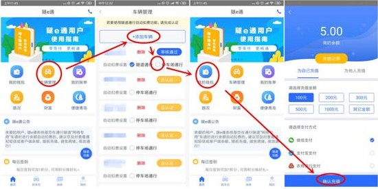 返回首页点击“充值”预存通行费;