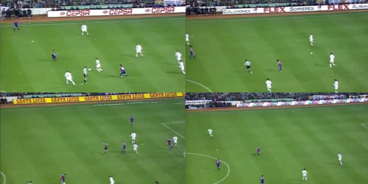 而实现这种高科技广告呈现方式的途径,我们可以理解为我们所看到的比赛画面被加上了一个“实时特效”。通常在球场中,技术提供方会与转播方协商合作,通过图像边缘识别技术来判断出移动镜头中广告牌的位置,然后用不同地区的不同广告图像替换赛场内实际展现的广告。在这个过程中,他们会考虑到球员、裁判员遮挡广告牌等干扰因素,通过高科技手段让这样的替换看起来天衣无缝。不过似乎他们也有失误的时候,比如下面动图中的守门员在经过广告牌时,上半身一度“隐身”......