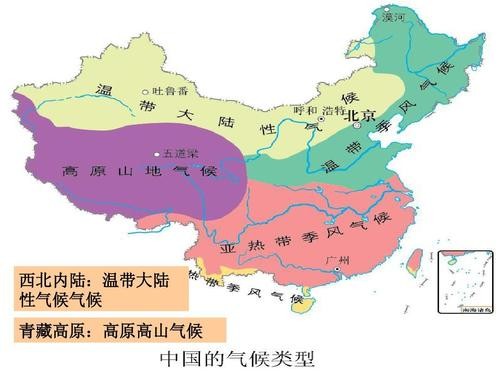 看完了西欧地图和气候分布图,让我们来看一下中国地图和中国气候分布图。西欧气候分布图和中国气候分布图简单一对比就会发现,中国一个国家的气候类型比整个西欧还复杂。这给中国培育优质草皮增加了很大难度。正如前文所言,草皮最重要的生长因素是气温,而中国的每一种气候,年温差和日温差都比西欧大,这对于草皮的健康生长是个大大的考验。