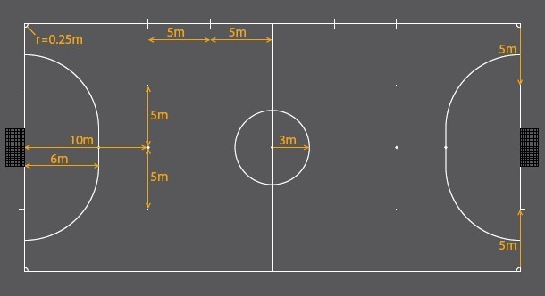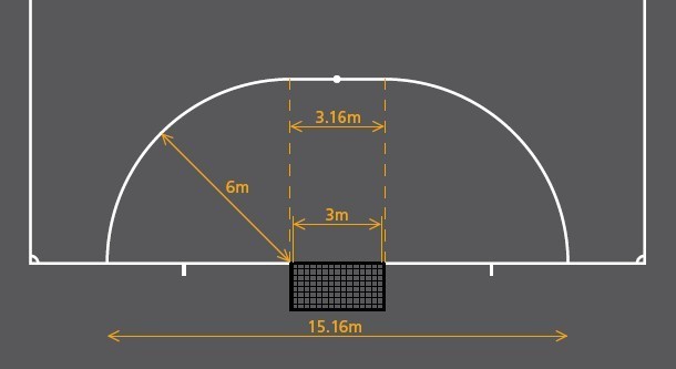 从两球门柱外沿并垂直于球门线向场内画两条长度为6米的假想线。在这条线的末端,以6米为半径从球门柱的外沿朝最近的边线方向画一个四分之一圆。两个四分之一弧的上部与一段长3.16米的直线相连接,此直线与球门线平行。由这些线和球门线围成的区域,即为罚球区。在两个罚球区内,从两球门柱之间的中点,垂直于球门线向场内6米处标记一个罚球点,该罚球点与两球门柱等距。