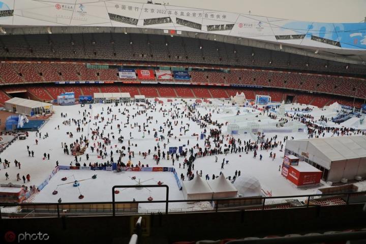 鸟巢举办冰雪运动的场面。综合性体育场不光为足球而生