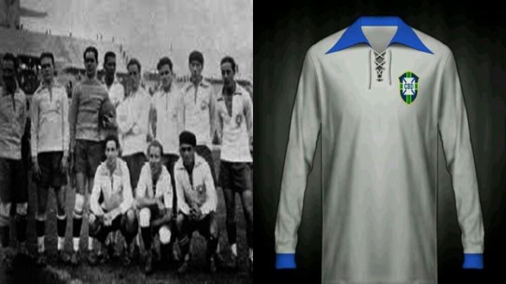 不过在那个时代,巴西队的球衣也使用过其他颜色,比如1916年,巴西队使用的是黄色和绿色的间条衫,看上去有点像本赛季西布朗队的复古客场球衣;