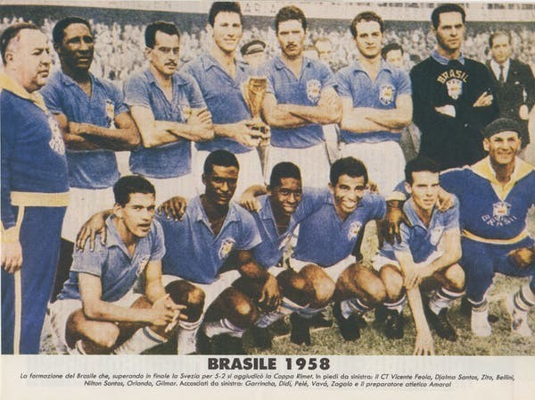 更搞笑的是,巴西队决赛的对手是东道主瑞典队,瑞典队穿的恰好也是黄色球衣,抽签结果瑞典队着黄。巴西队甚至没有准备客场球衣,于是他们在当地买了22件蓝色POLO衫,把原来球衣上的队徽扒下缝到新球衣上。