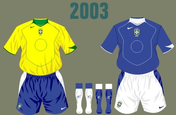 1953年黄色球衣诞生之后,巴西队只穿过一次白色球衣,不过那是2004年和法国队庆祝国际足联成立百年的纪念赛,双方上半场都身着旧式球衣出场,巴西队球衣颜色为全白,两臂有蓝色环带,法国队的白色球裤几乎长及膝盖,与现代样式大相径庭,下半场则换回当时的球衣样式。