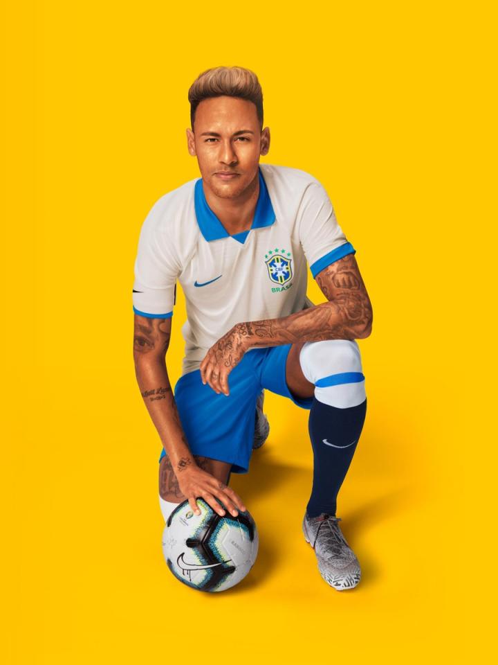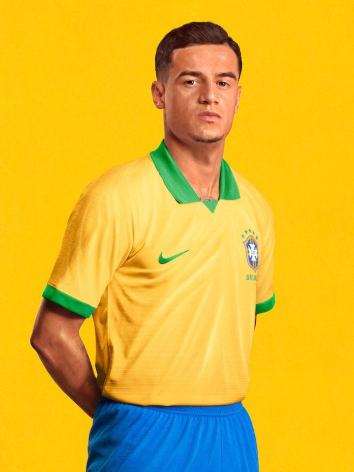 巴西队正式揭晓2019年美洲杯主客场球衣,主场依然沿用传统的黄色主色调搭配绿色衣领和袖口的搭配,设计上则致敬1989年球队第四次夺得美洲杯时的款式。