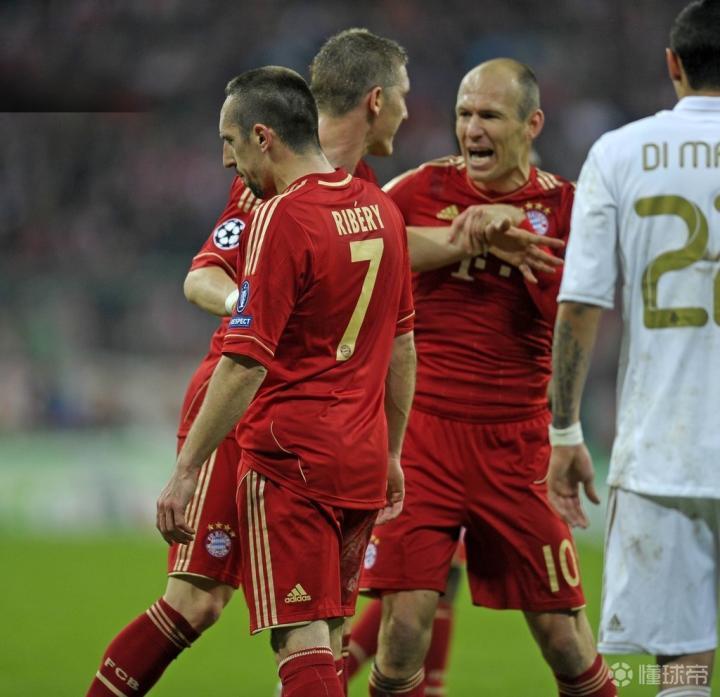 事件三:2012年4月,拜仁在欧冠半决赛客场对阵皇马,中场休息时里贝里先是口头攻击罗本,后来甚至动了拳头。
