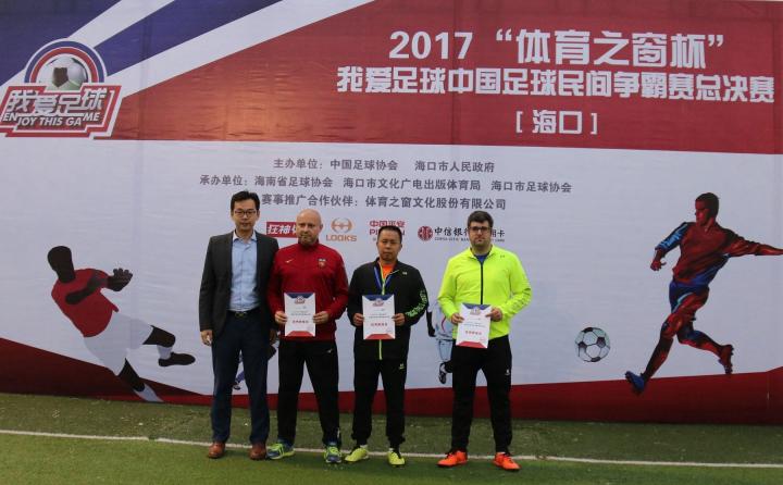 何塞(左二)率队夺得我爱足球全国总决赛冠军并被中国足协评为最佳教练