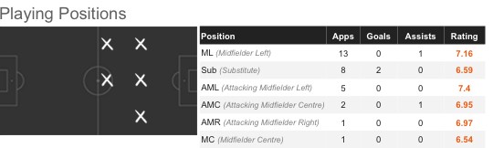 布法勒在塞尔塔实现了新生,过人次数全欧洲第一展现了他堪称残暴的盘带技术;然而在前场配合和直接攻击球门的效率上他还需要提高很多,如何做到一脚出球,简单直接的帮助球队,而非陷入单打独斗的怪圈,是他接下来需要提升的关键点。目前摩洛哥人的第一要务是帮助塞尔塔保级,而今年夏天回到南安普顿之后,他也极有可能被放入转会市场:法甲联赛多支球队对他有意,其中包括了马赛,里昂和摩纳哥,而重回里尔下赛季征战欧冠也不失为一种选择。不管如何,摩洛哥人盘带水准毋庸置疑,但是作为前场核心,他要走的路还有很长。