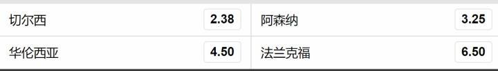 欧联杯夺冠赔率:切尔西高居榜首,阿森纳紧随其后