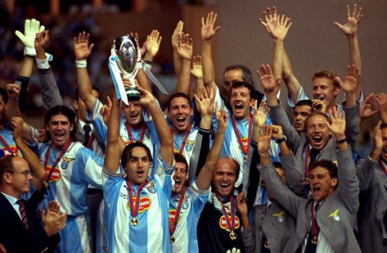 但在1999-2000赛季他们就一鼓作气拿下了意甲,意大利杯,欧洲超级杯加冕三冠王。蓝色雄鹰展翅翱翔,马切吉亚尼,米哈伊洛维奇,内斯塔,贝隆,克雷斯波,内德维德,萨拉斯,一长串星光熠熠的名字成就了拉齐奥队史的世纪宏伟篇章。