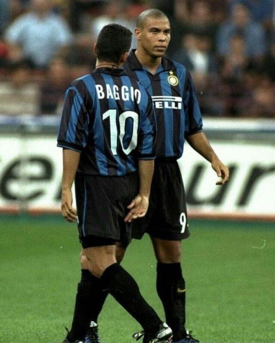 巴乔和罗纳尔多这张合影,应该是那个赛季国米球迷所有的期待,国米球迷以及莫拉蒂对巴乔的喜爱从10号球衣就能看出来,虽然那个时候的巴乔已经是31岁的老将,不再是那个盛世巅峰的罗比,但仍然毫不犹豫的将10号给了巴乔,罗纳尔多穿回了他最爱的9号,只有委屈了萨莫拉诺,他无奈的接受了1+8=9的安排,要知道在罗纳尔多刚来国米想要9号的时候,都被萨莫拉诺拒绝了。