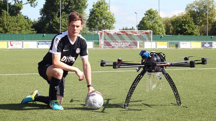 在吉尼斯世界纪录官员的监督下,从30多米高空掉落的球每小时55英里以上的速度扑向约翰,尽管球尽全力想摆脱控制,但是几次尝试之后约翰成功打破了球自由落体最大控制高度的世界纪录。英国一家名为Batcam的设计公司为约翰专门制造了上图中的无人机,该设备使用特殊设计的机械臂来抓取和释放足球。