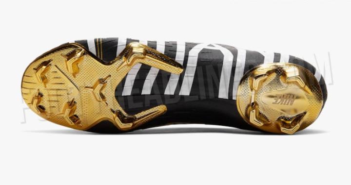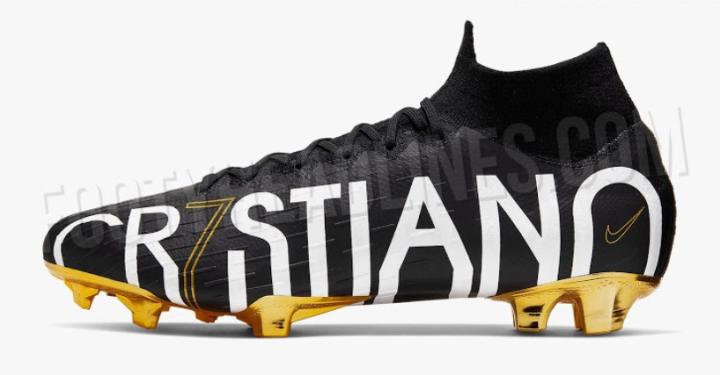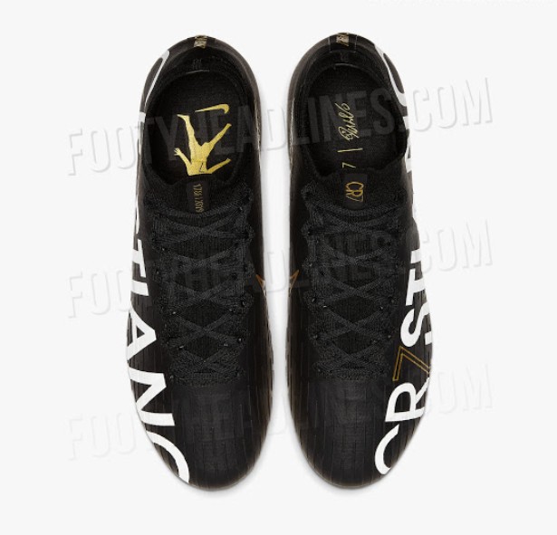 新款耐克Mercurial Superfly CR7 2019专属足球鞋在配色上采用了全黑的主色系,鞋面外侧饰有大号“CR7STIANO”印花。金色元素以鞋面的Swoosh和大底装饰色的形式出现,值得注意的是鞋面上的“CR7STIANO”印花中还可以看到一个小的Swoosh。