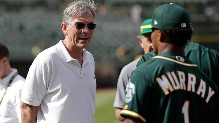 ▲比利·比恩与穆雷在运动家队主场交谈。