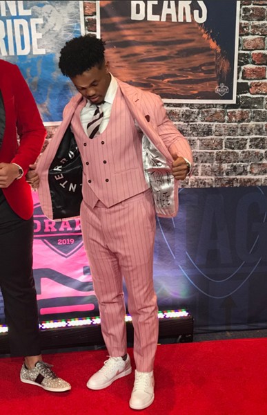 ▲穆雷穿着一身粉色西装和定制的AJ 1低帮版本参加选秀大会。