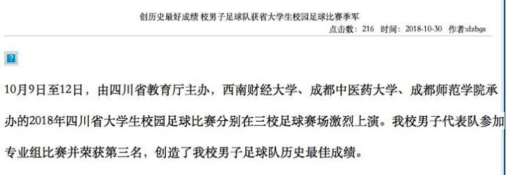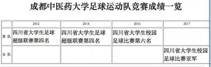 成都中医药男子足球队成绩: