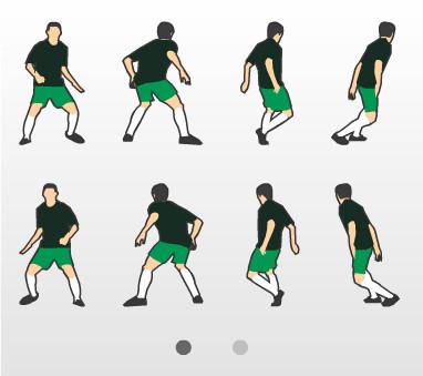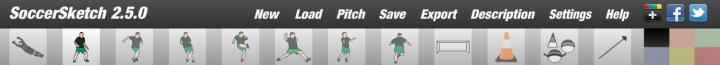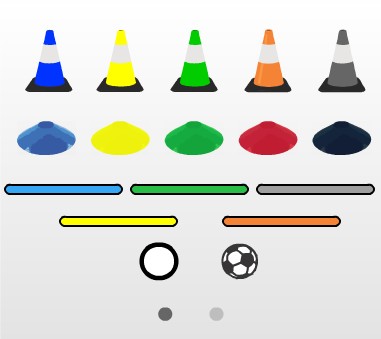 选择了场地后,就直接进入到制图界面,可以看到上部的人物动作选择和标志物,训练道具以及球员和标准物的颜色选择。