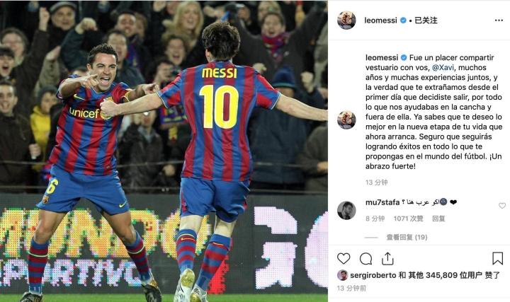 (图)梅西在Instagram上发文祝福哈维