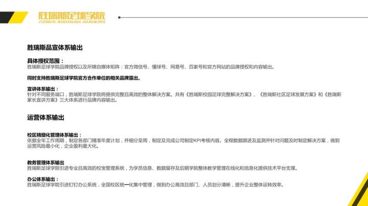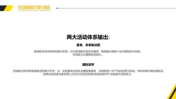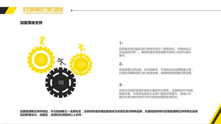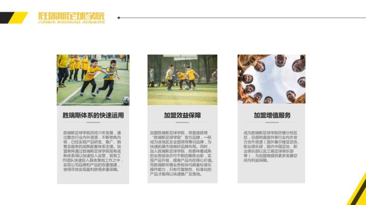 胜事丨胜瑞斯足球学院全国加盟计划震撼发布! 胜瑞斯足球学院 2019-05-10 10:58随着胜瑞斯足球学院运营管理体系日趋完善,特面向全国各省市青少年足球培训机构及有意向投身青少年足球培训行业的人士提供加盟服务。为中小型青训机构提高俱乐部运营效率、俱乐部营收、俱乐部知名度等方面提高有效的解决方案。加盟意向请咨询胜瑞斯加盟业务专员 联系电话:15733176286(电话同微信)展开更多