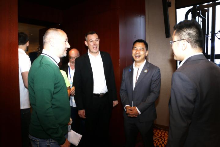 ▲双方俱乐部官员愉快交流。