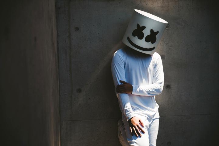 棉花糖(Marshmello),美国DJ、电音制作人,总是带着面具出现。