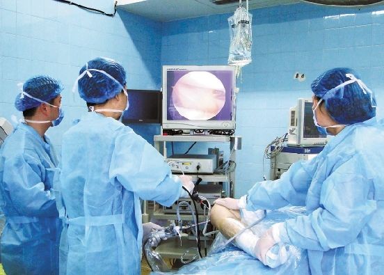 一度二度的半月板损伤统称为轻度损伤,医生一般都会先建议保守治疗;那三度损伤怎么办呢?目前的主要医疗手段是关节镜手术。关节镜手术一般是朝着膝盖打两个直径小于1厘米的孔,往两个孔插入两根空心管儿,一根里头装着打光设备和一个摄像头,光源和摄像头进入膝关节后,关节内的任何病变都可以放大数倍投射到显示频上——小小的半月板在显示屏上就像一堵墙一样,哪儿有裂缝,哪儿有窟窿清晰可见。